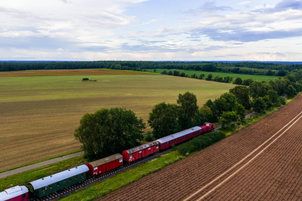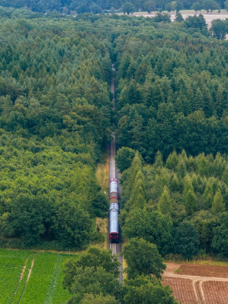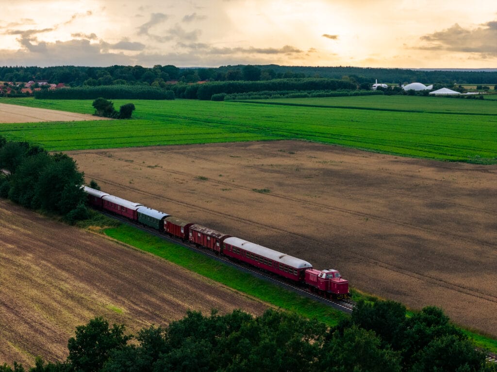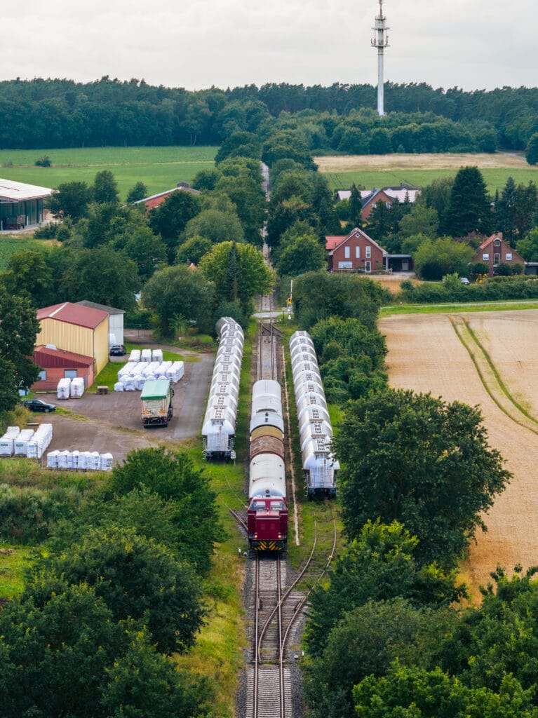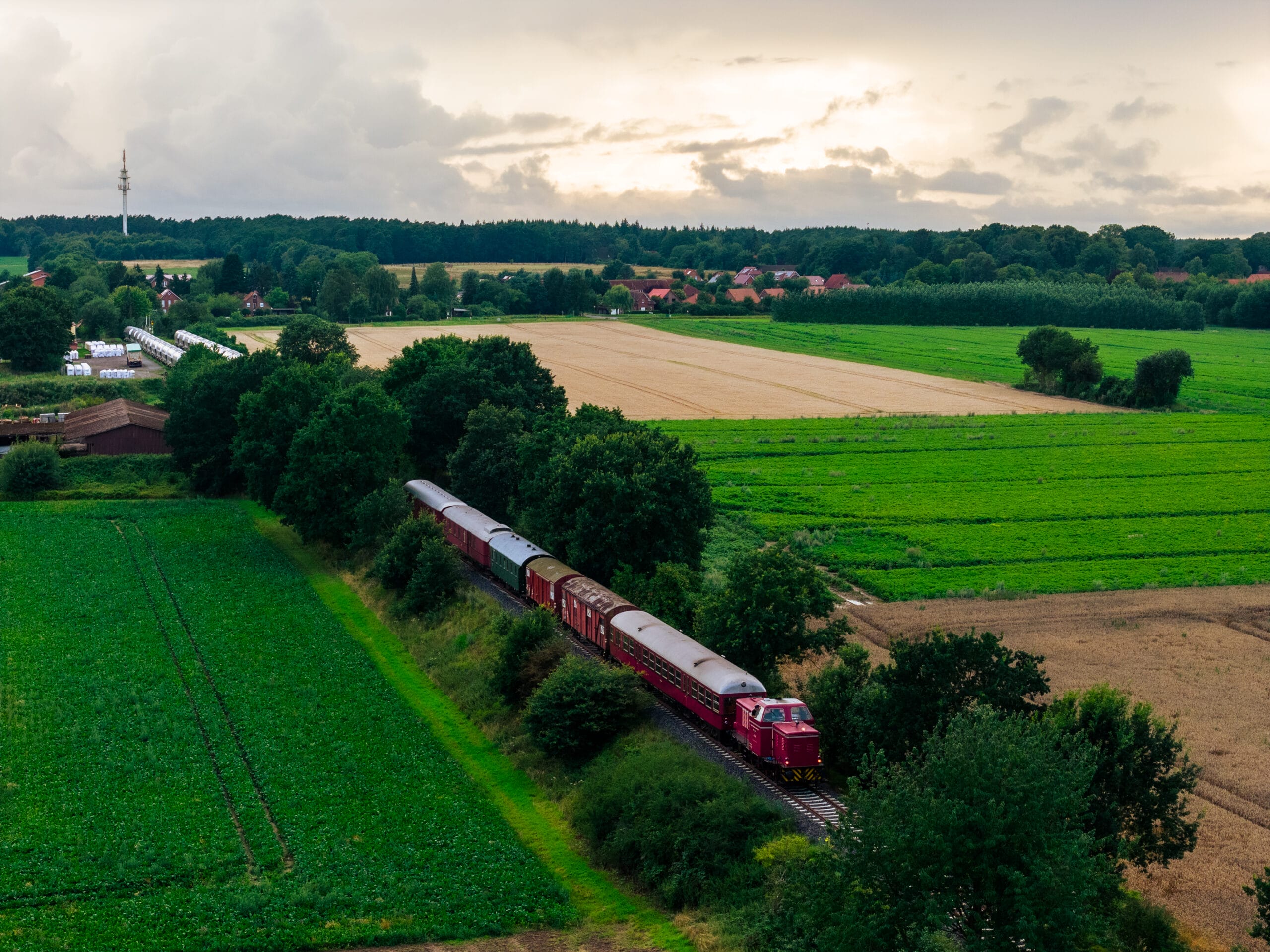 Gut, das Wetter spielte nicht so richtig mit, der Ort ist auch nicht spektakulär, aber die 46-01 des Heide-Express’ hat hier einige interessante Fahrzeuge im Haken.