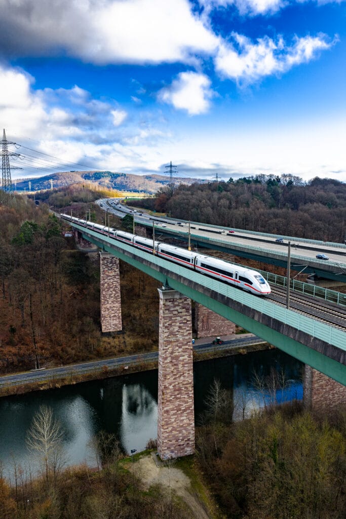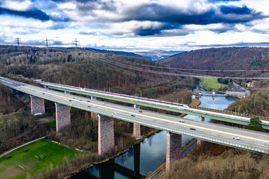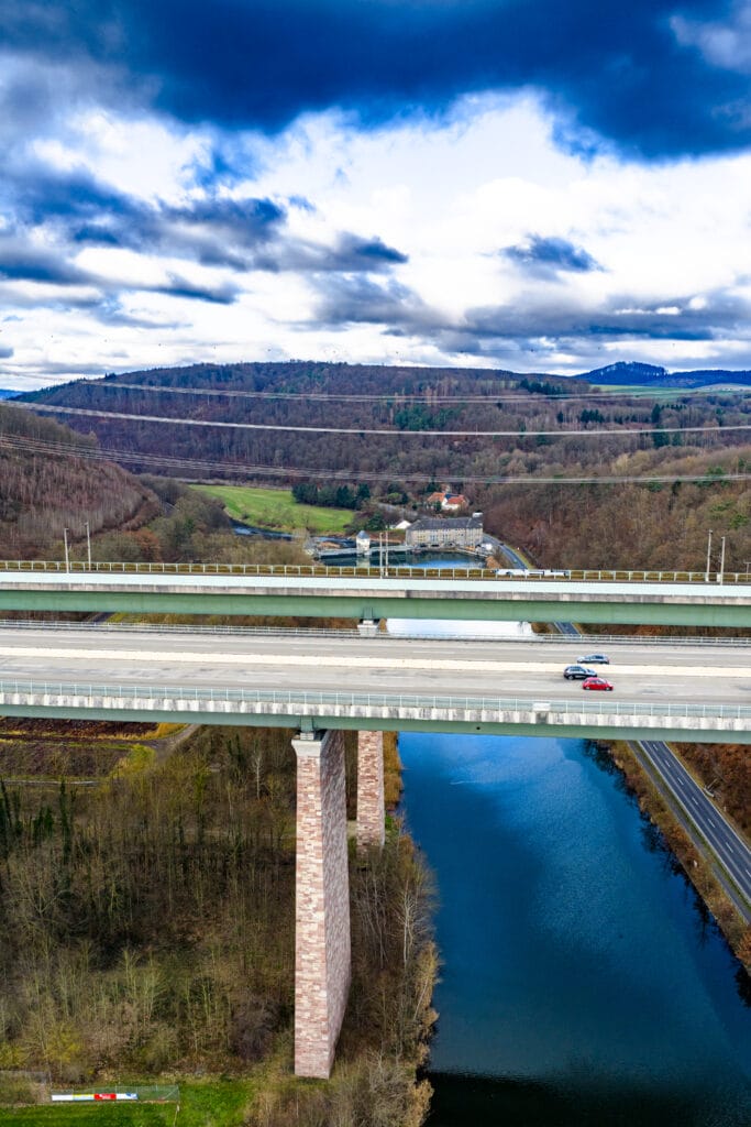 Vor dem weihnachtlichen Trubel noch mal kurz in die Luft gehen: Das, was Chris Sea mit „Driving Home for Christmas“ besungen hatte, schaute sich die Lünedrohne an der Werratalbrücke einmal an. Auf der einen Seite die Bundesautobahn 7, die sich über die Kasseler Berge schlängelt (und auf der ich mit einem kleinen VW Polo schon mal in ganz große Schwierigkeiten geriet), auf der anderen Seite die Schnellfahrstrecke der Bahn zwischen Göttingen und Kassel (auf der ich ohnehin immer Probleme habe).