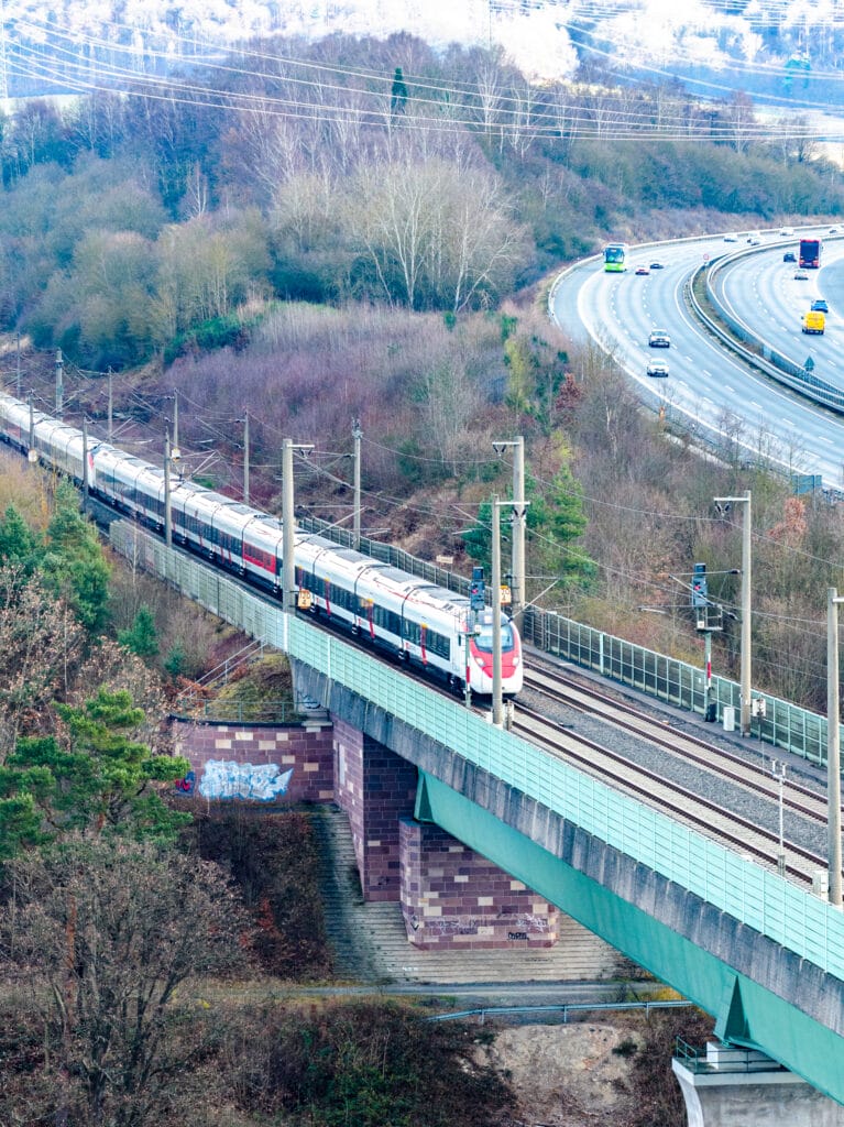 Vor dem weihnachtlichen Trubel noch mal kurz in die Luft gehen: Das, was Chris Sea mit „Driving Home for Christmas“ besungen hatte, schaute sich die Lünedrohne an der Werratalbrücke einmal an. Auf der einen Seite die Bundesautobahn 7, die sich über die Kasseler Berge schlängelt (und auf der ich mit einem kleinen VW Polo schon mal in ganz große Schwierigkeiten geriet), auf der anderen Seite die Schnellfahrstrecke der Bahn zwischen Göttingen und Kassel (auf der ich ohnehin immer Probleme habe).