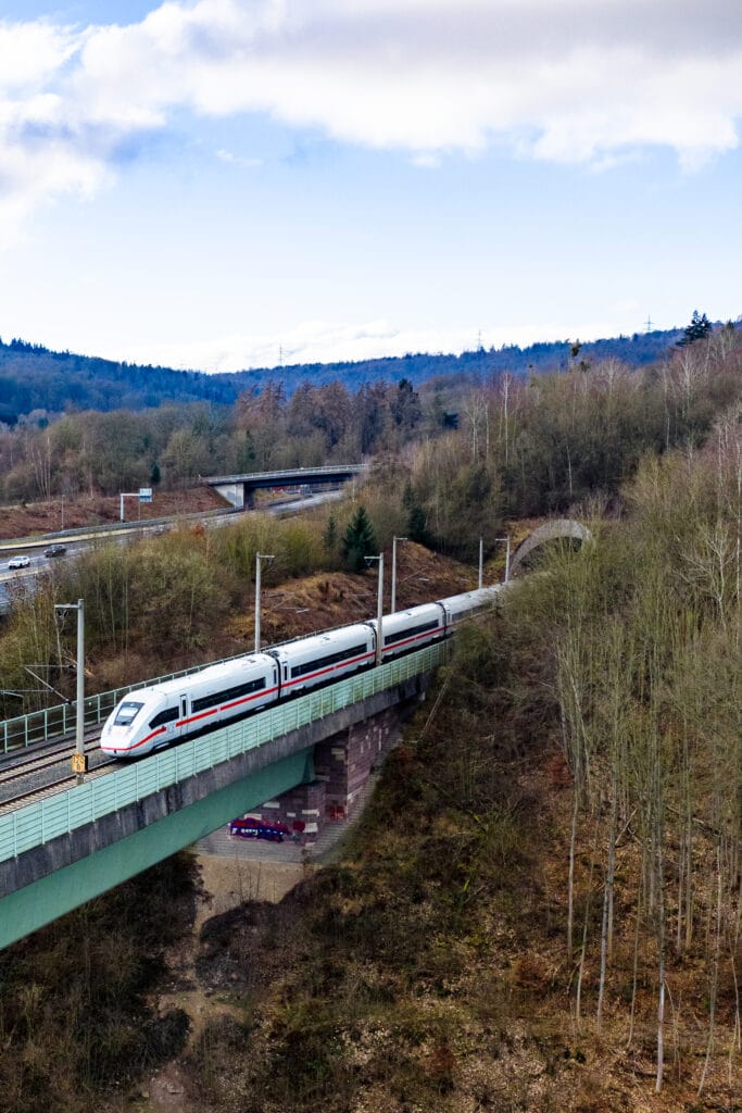 Die Auslöseverzögerung der Drohne machte sich mal wieder bemerkbar, die schönen Züge verstecken sich grundsätzlich hinter Signalen oder Fahrleitungsmasten, die Sonne hielt sich auch lieber bedeckt im Hintergrund, aber immerhin schaute ein bisschen blauer Himmel vorbei.