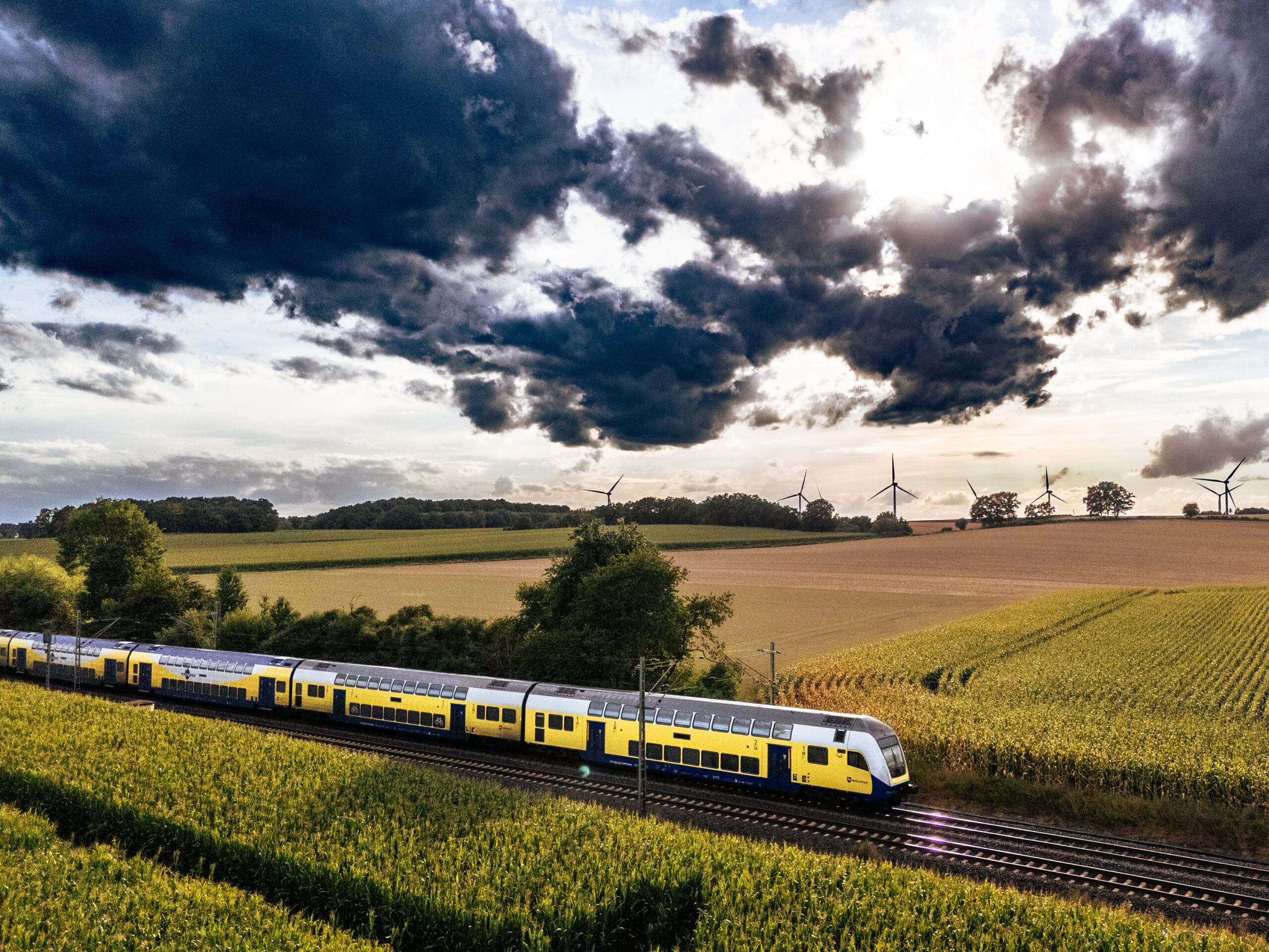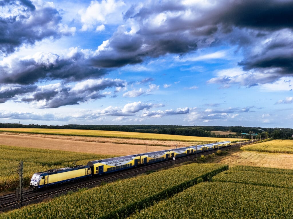 Während andere Menschen versuchen, jedes Gramm an ihrem Rennrad wegzuoptimieren, schleppe ich noch Drohne, Controller und Ersatzakkus mit, schließlich kann man ja nie wissen, wann schöne Motive zum Fotografieren vorbeikommen. Und es ist eine schöne Ausrede, um zwischendurch mal zu Verschnaufen und die Herzfrequenz wieder unter Kontrolle zu bringen. Hier bot sich ein prächtiges Wechselspiel zwischen Wolken und Sonne an, um mal wieder ein paar Züge zwischen Uelzen und Lüneburg zu fotografieren.
