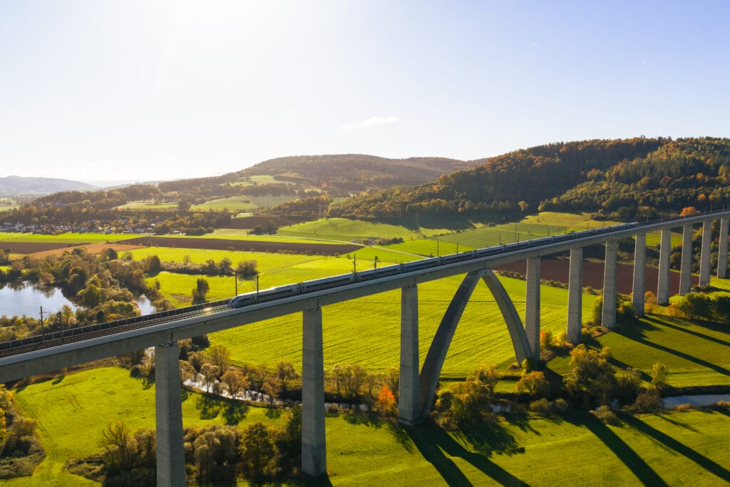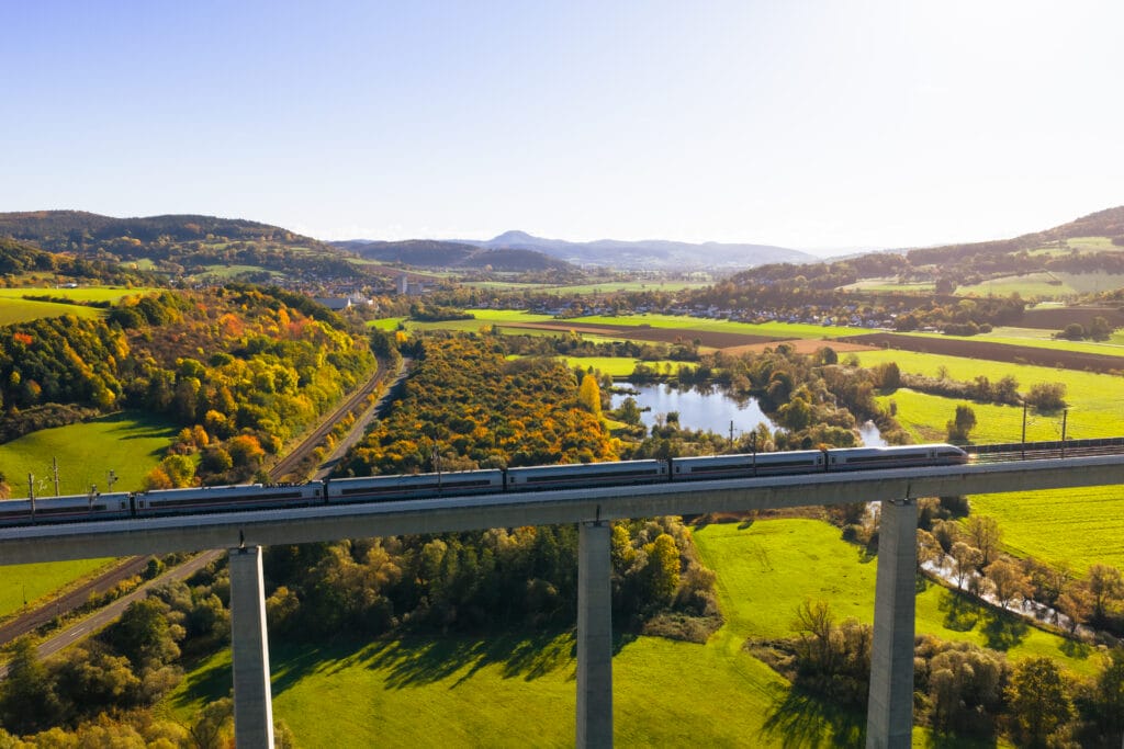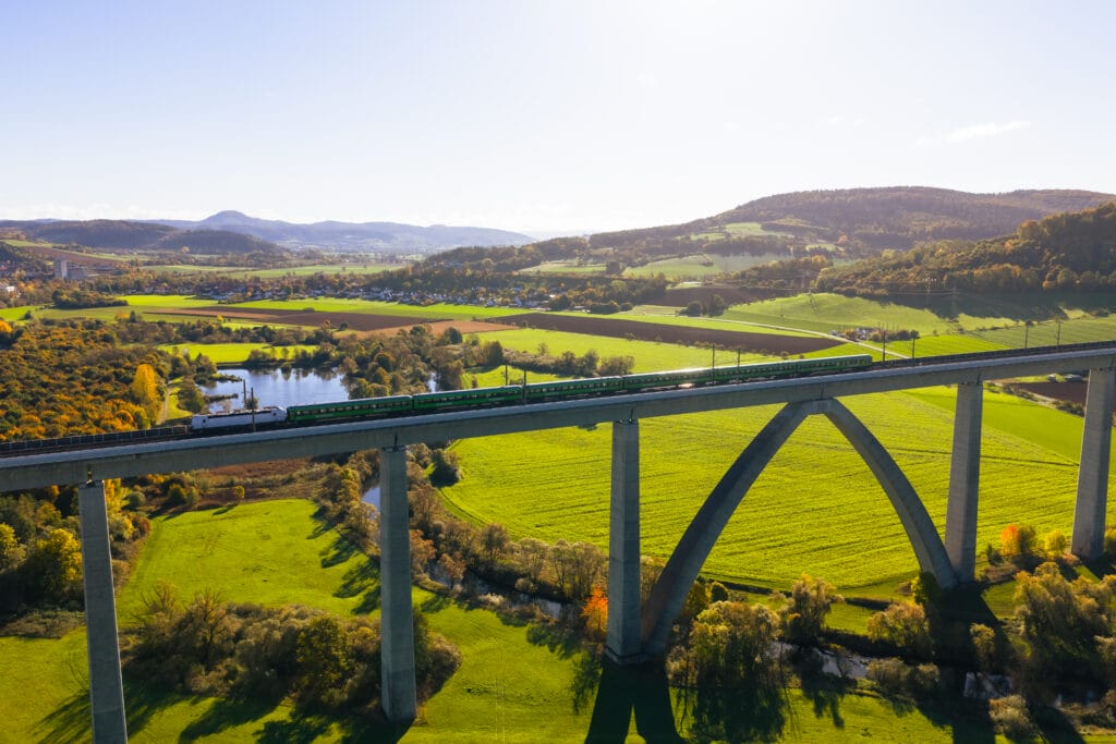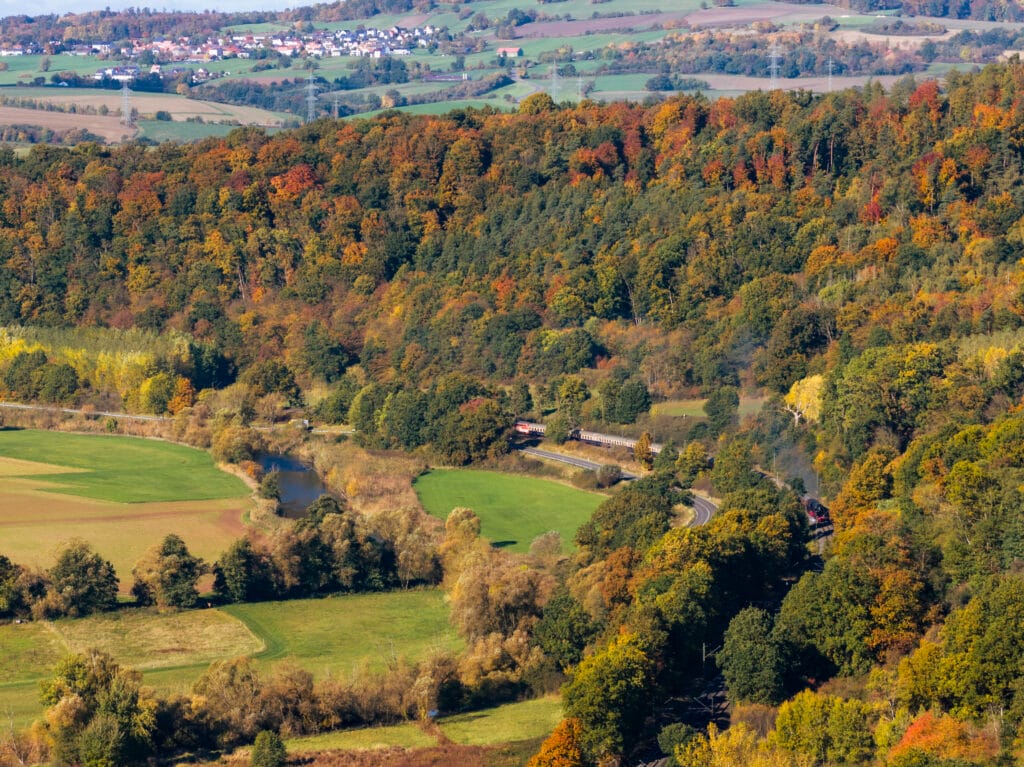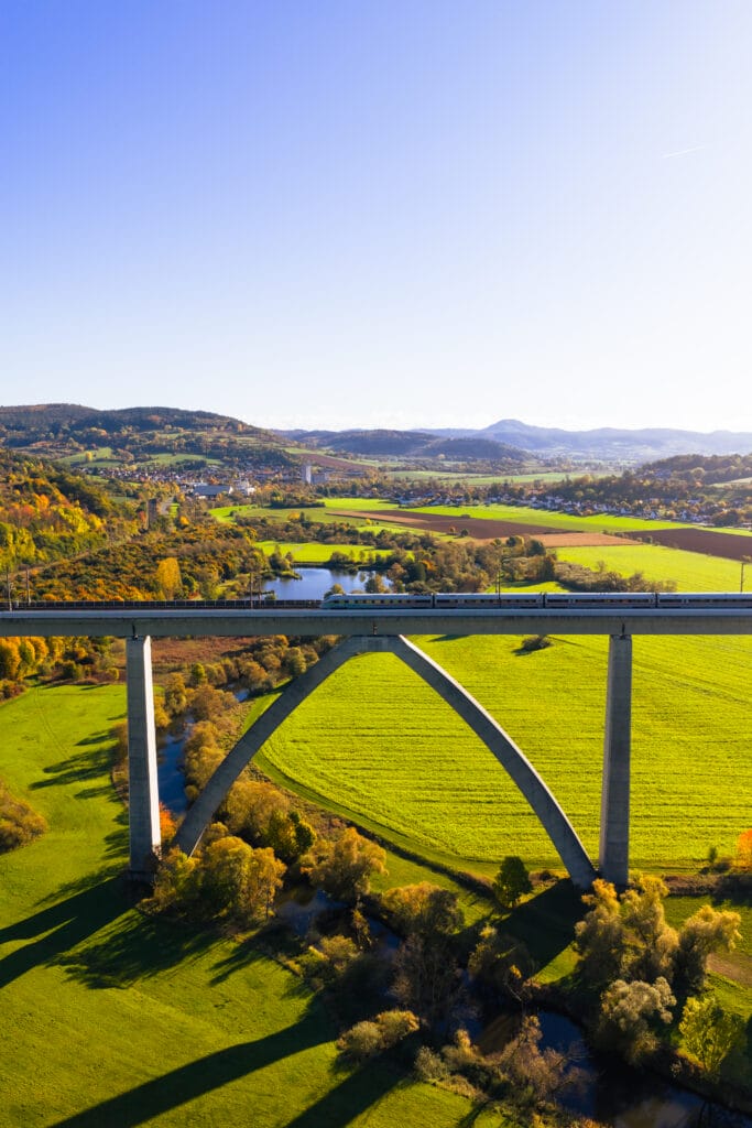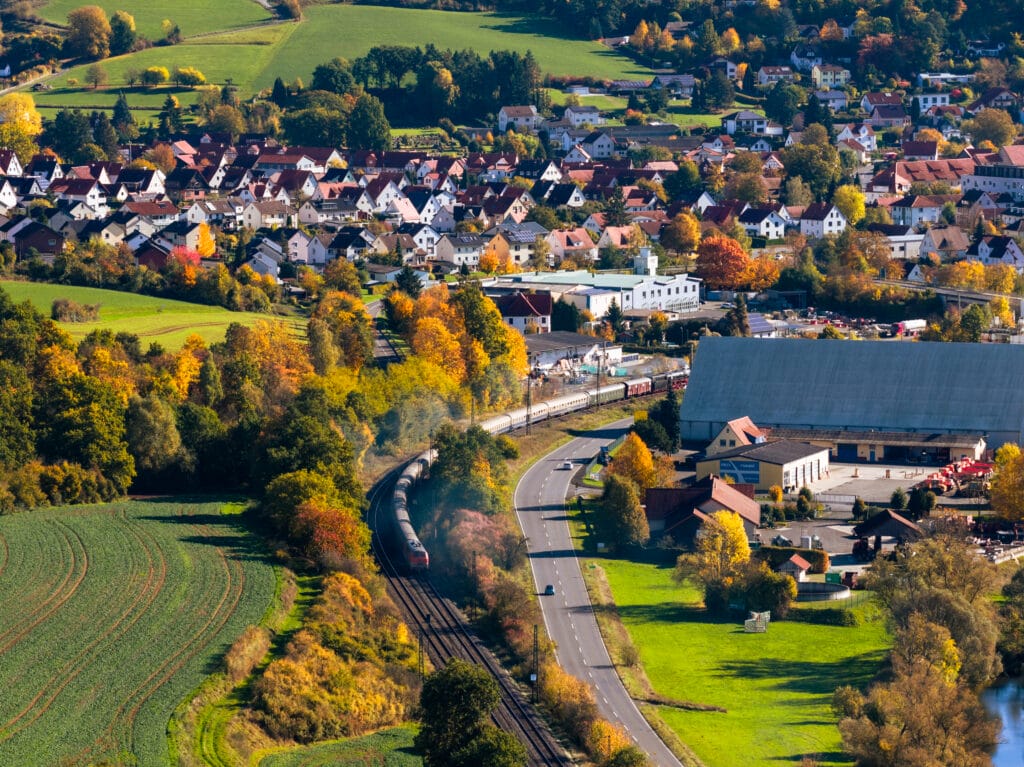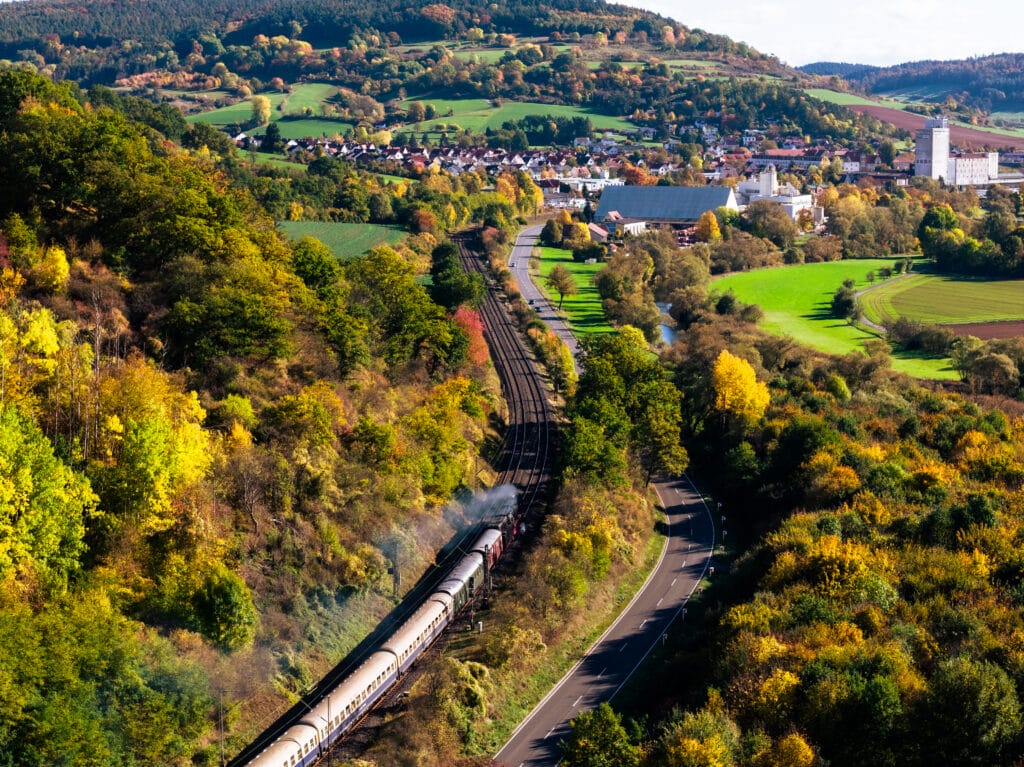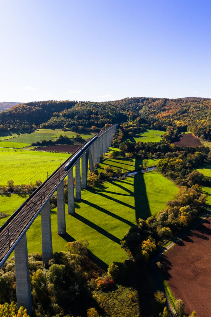 Die Aufnahmen vor- und nach der Fuldatalbrücke waren dann leider nicht so der Hit, denn aus vergangenen Begegnungen weiß ich ja: 012 104 ist rasend schnell unterwegs, da kommt die Drohne nicht hinterher.