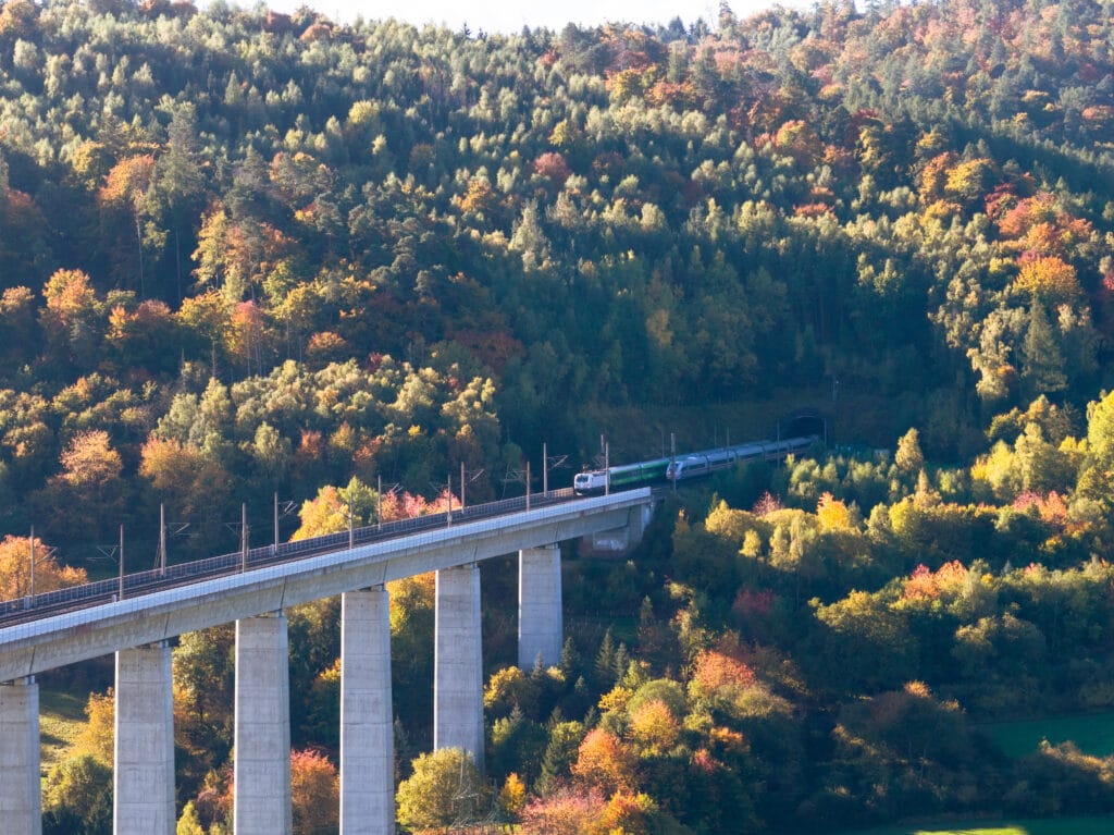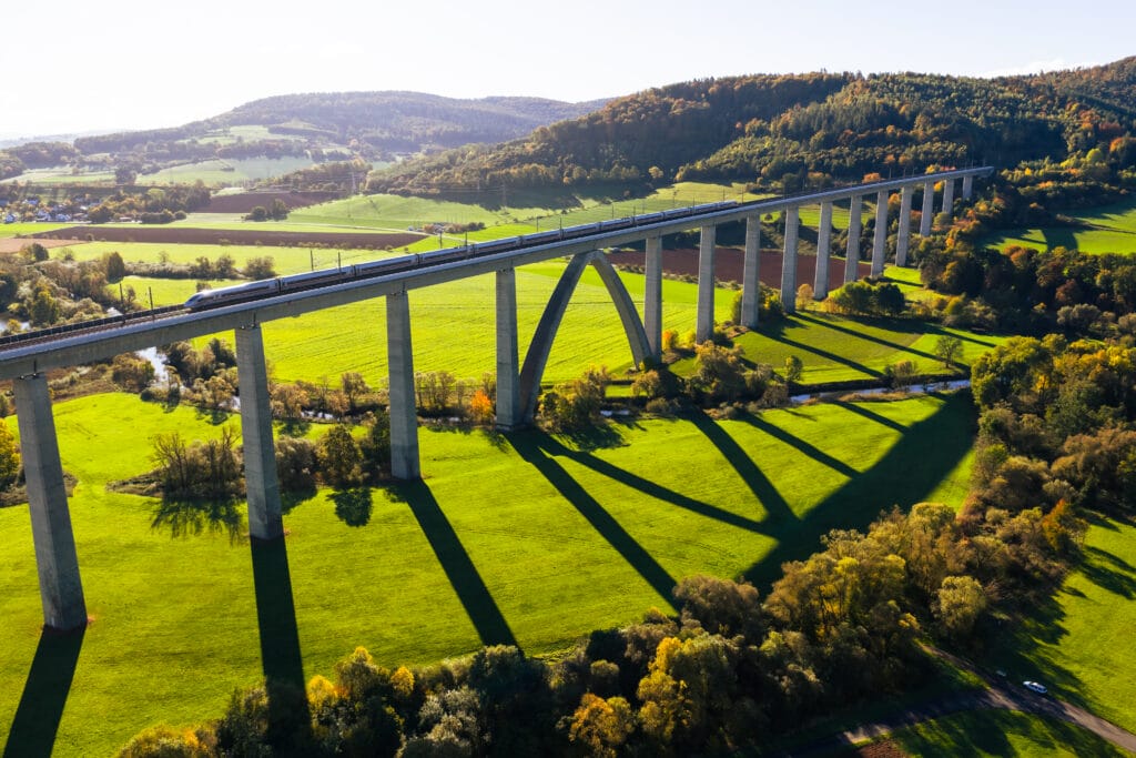 Und wenn wir schon grad da sind, haben wir natürlich auch die Fuldatalbrücke in Augenschein genommen. Die Distanz von der Brücke zum Bahnhof Kassel-Wilhelmshöhe beträgt recht genau acht Minuten, so dass man sich gut am Fahrplan orientieren kann und nicht wartend in der Luft den Akku leerfliegen muss.