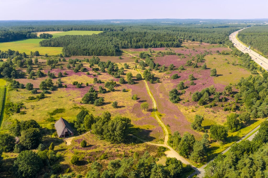 Auch in die Behringer Heide kann man die Drohne von außerhalb des Naturschutzgebietes einen Blick werfen: