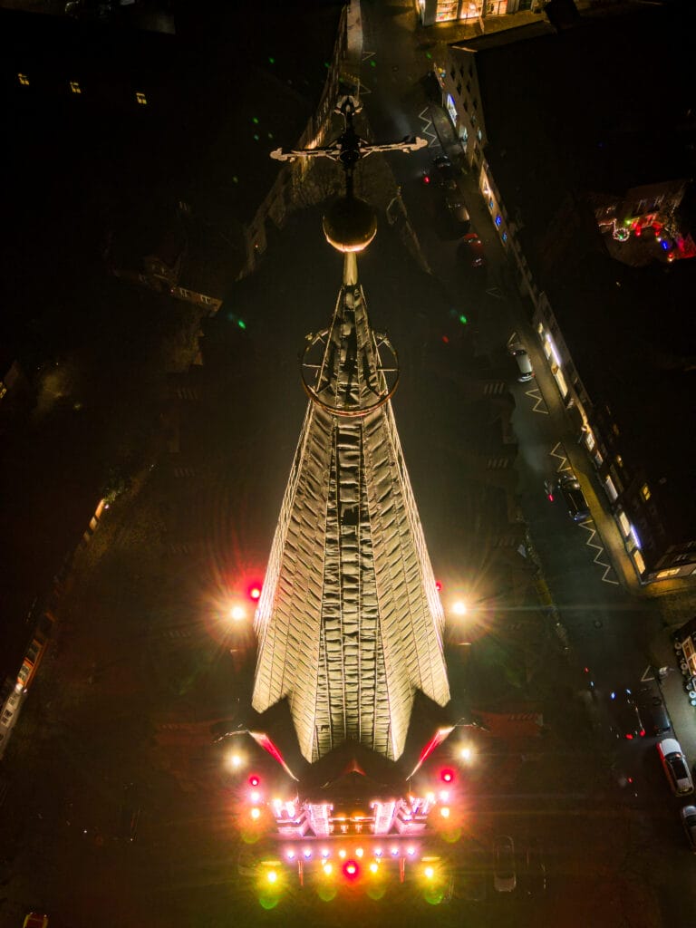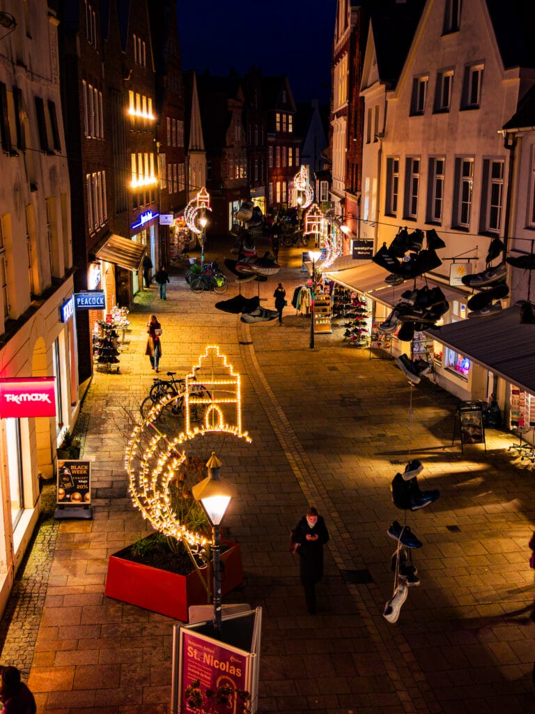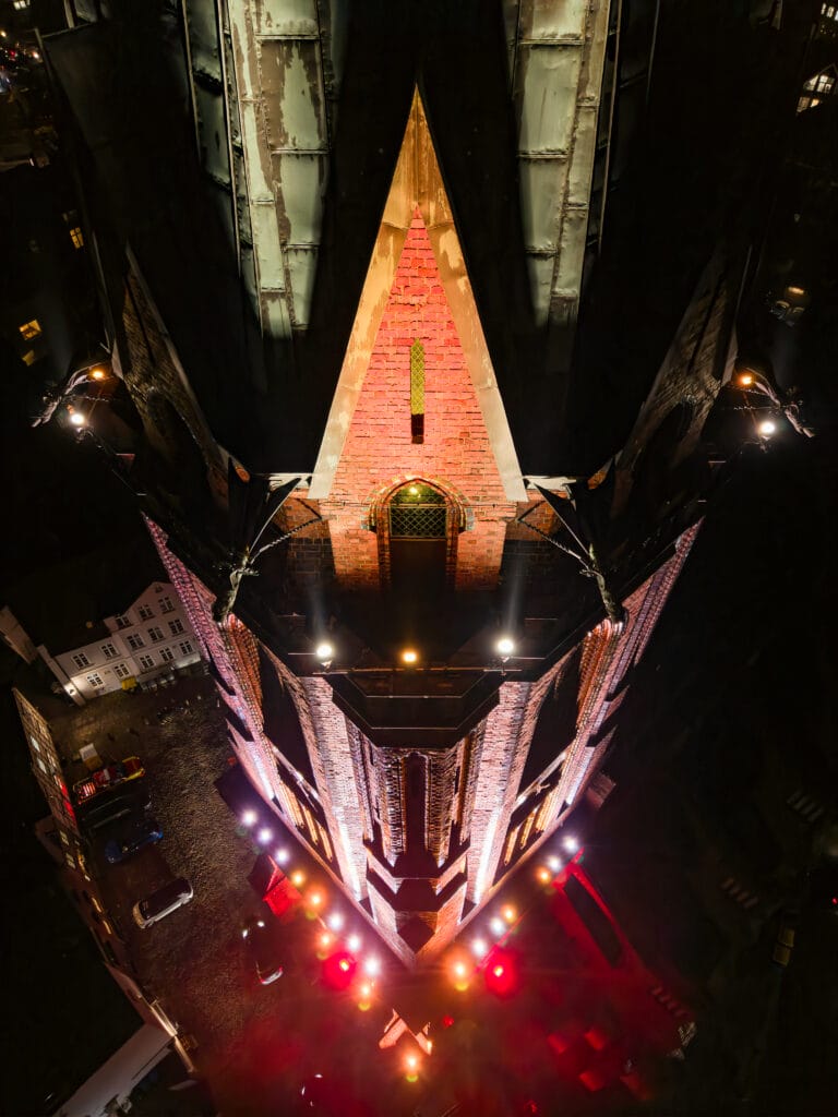 Und plötzlich leuchtet die schönste Stadt der Welt: In der Grapengießerstraße wurde die neue Weihnachtsbeleuchtung bereits eingeschaltet. Und dann war die Lünedrohne gleich zur richtigen Zeit am richtigen Ort, um die neue Beleuchtung der St. Nicolai-Kirche zu bestaunen.