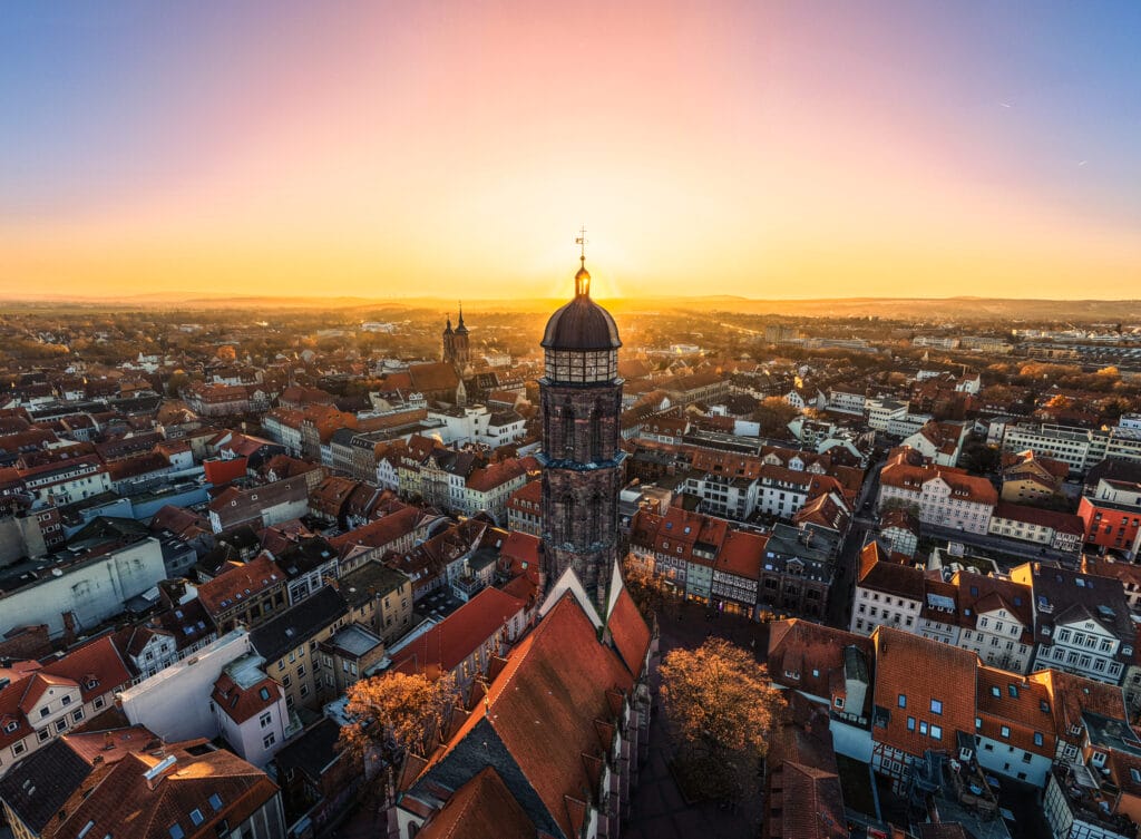 Zur richtigen Zeit am richtigen Ort: Am späten Freitagnachmittag bot sich hinter der Göttinger St. Jacobikirche ein herrlicher Sonnenuntergang.