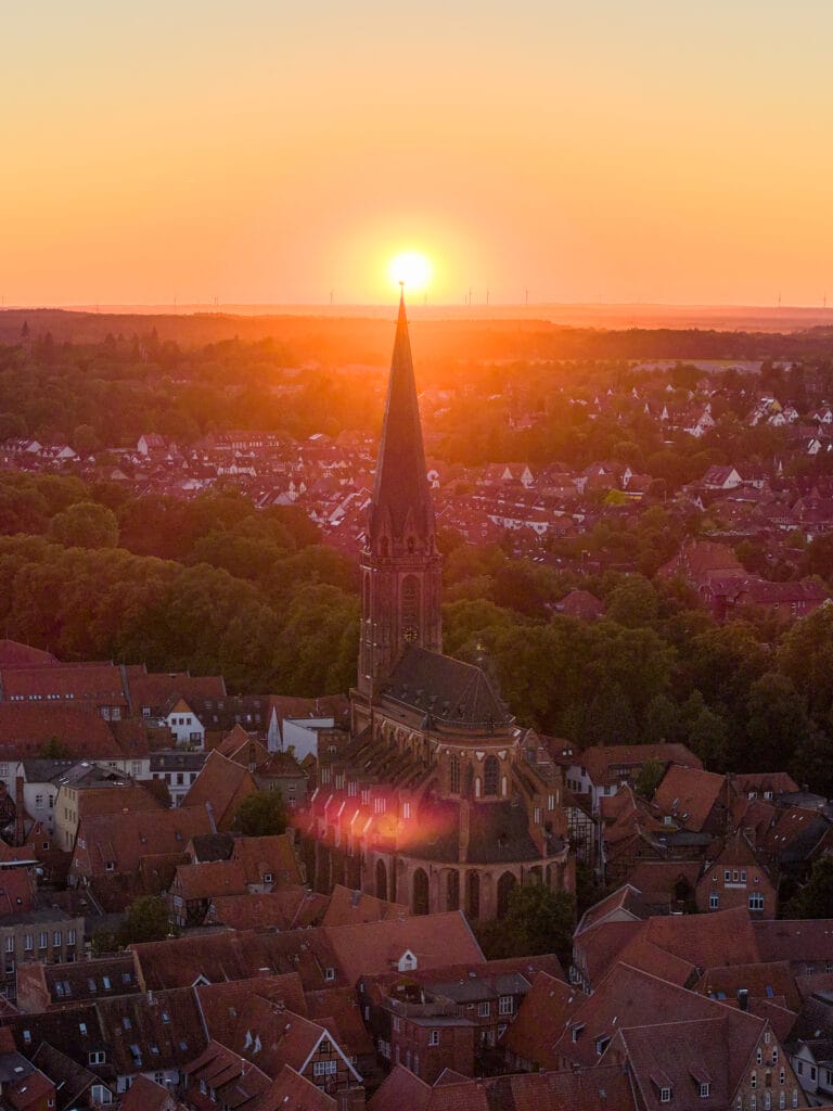Die Kirche St. Nicolai ist momentan wegen Problemen in der Bausubstanz leider geschlossen, also überbrückt die Lünedrohne die Wartezeit bis zur (hoffentlich baldigen) Wiedereröffnung mit einem Besuch von außen im sommerlichen Abendlicht.