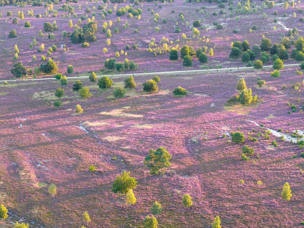Schöner wird es in diesem Sommer nicht mehr: Die Heideblüte hat ihren Höhepunkt gerade überschritten, die Zeit drängte, aber die Lünedrohne hat an Röders Heide…